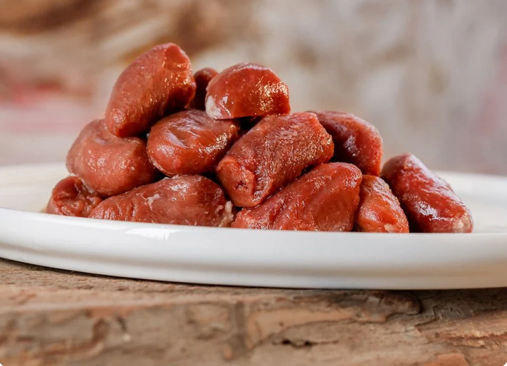 Hühnerherzen sind erstklassige Eiweißlieferanten für Hund und Katze. Nicht nur, weil sie besonders viel davon enthalten, sondern auch, weil das darin enthaltene Eiweiß besonders hochwertig ist. Werden Hühnerherzen zusammen mit Mägen gefüttert, entsteht ein nahrhaftes Ragout, das vor allem Hunde lieben.