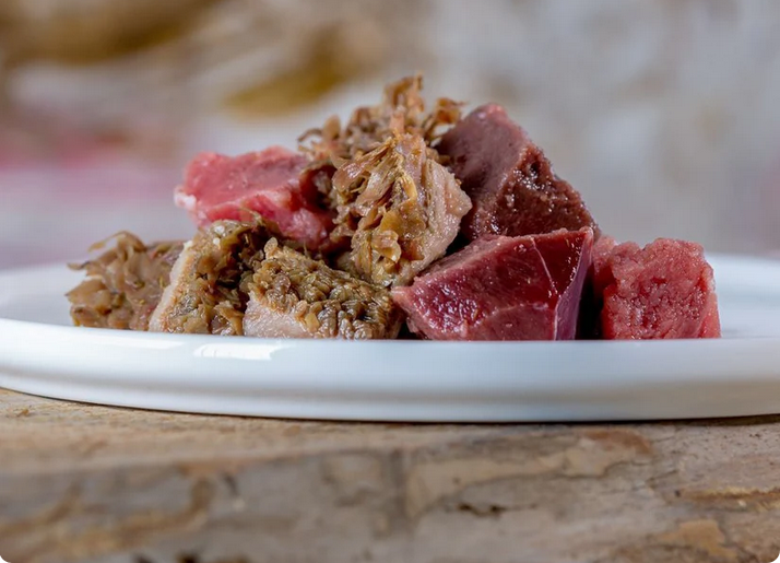 Das Schlemmermenü aus unserem Barf-Shop enthält feinstes Rindfleisch im Verhältnis von 60 % Pansen, 30 % Herz und 10 % Muskelfleisch. Probieren Sie es aus, Ihr Hund wird es Ihnen danken.